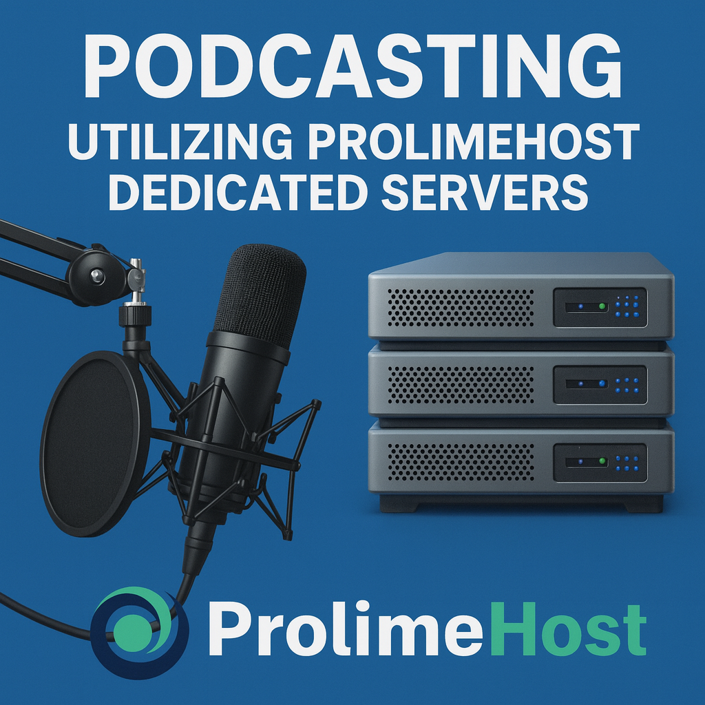 Podcasting involves hosting large media files (audio or video) and delivering them to listeners via RSS feeds or direct downloads. Using a dedicated server from ProlimeHost has several advantages over traditional podcast hosting platforms or shared/VPS hosting: