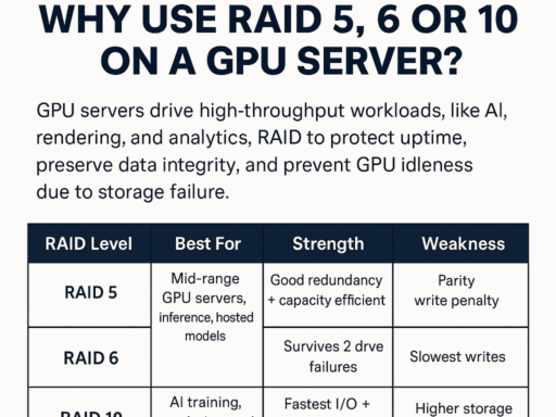 BySteveNovember 28, 2025 Why RAID 5, 6, or 10 Matters on a GPU Server And How It Impacts Your ROI AI Servers Dedicated Server General GPU servers ProlimeHost Tutorials & Tips